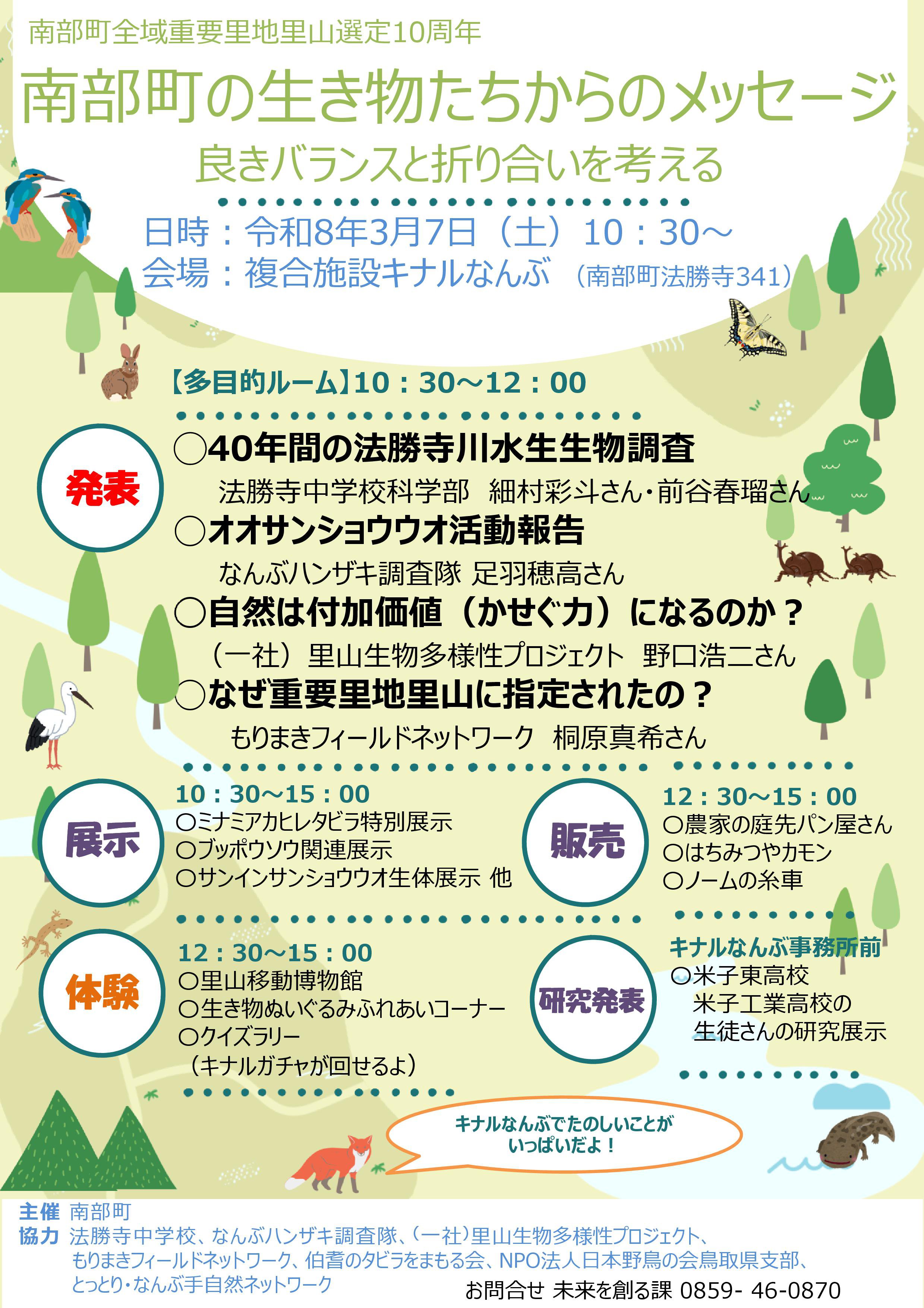 キナルなんぶにて、南部町の生き物たちからのメッセージというイベントが開催されます。